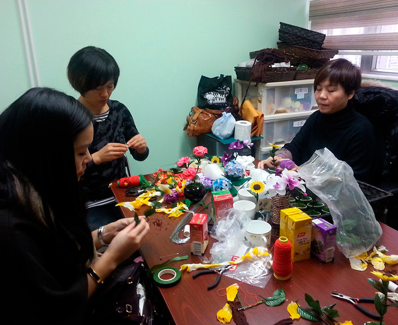 「手晴家」於葵涌工廠大厦的新置辦事處於2014年12月18 日舉行開放日,劉蘊儀總幹事,顧問張詠怡及陳惠娟小姐到場參觀。當天,手晴家陳列出多款不同類型的精美產品並分享了多位新來港婦女參加了「手晴家」後,生命如何得以改變。隨後,眾人還即席學習如何製作絲網花,親嘗製作的樂趣及滿足感。